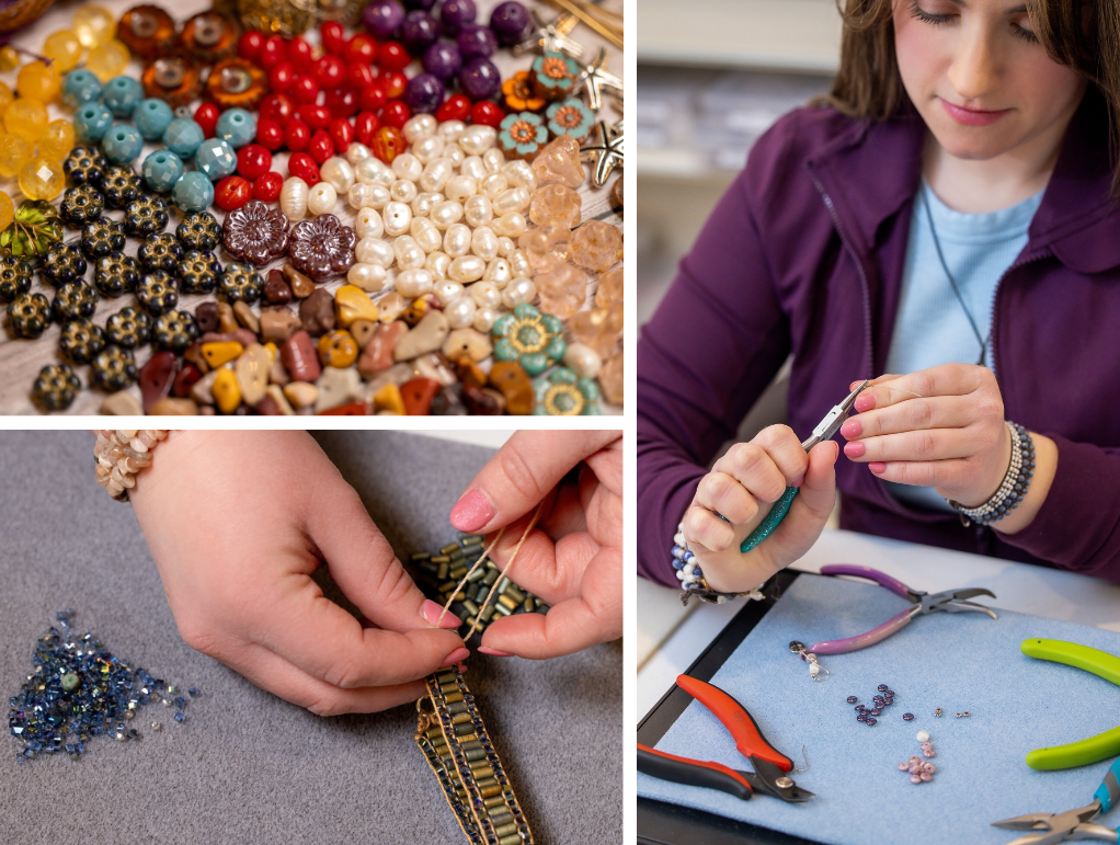 My bracelets come in many styles: simple stackable, memory wire, loomed, woven, hand-knotted, and macramé. I often use a unique button clasp to capture the nature scene.